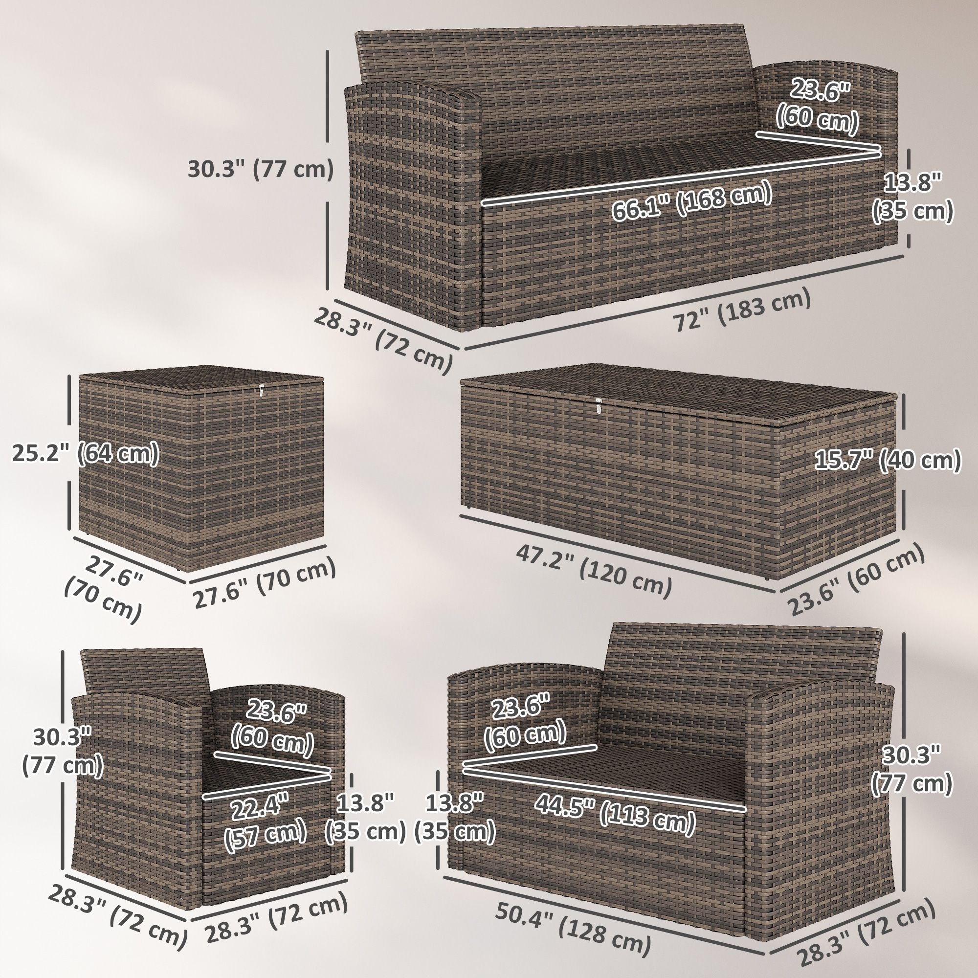 • 6 Piece Patio Set: This 7 seater outdoor patio furniture set includes a three-seater sofa, a loveseat, two armchairs, a storage coffee table and a storage box used as a side table - easy to combine into any configuration you like, such as "3+3" or "2+4".