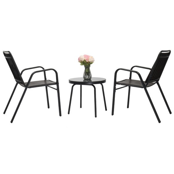 Transform your outdoor space into a captivating oasis with our 3-Piece Bistro Table Set. Immerse yourself in the allure and sophistication of this stunning patio furniture ensemble. Crafted with meticulous attention to detail, this bistro set exudes timeless elegance and adds a touch of luxury to any outdoor setting. The sleek design and intricate detailing make it a true showstopper, while the stackable chairs offer a practical solution for effortless storage and versatility. Whether you're hosting intimate gatherings or simply enjoying some quiet time, this bistro set creates an inviting ambiance that will leave your guests in awe.