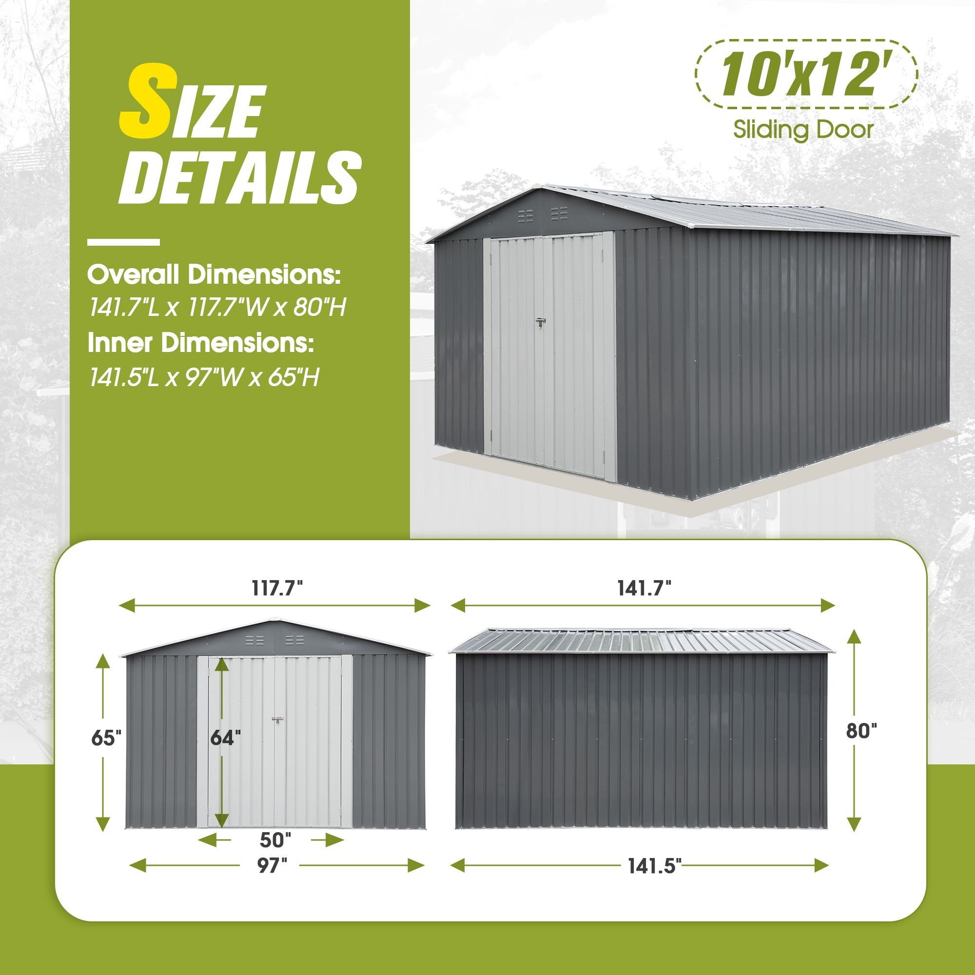 [Boost Your Storage Options]: This 10' x 12'outdoor shelter is a perfect place to keep your lawnmowers, bicycles, storage boxes, wheelbarrows, and things you only use at certain times of the year. It gives you plenty of room to organize your home or garden neatly.