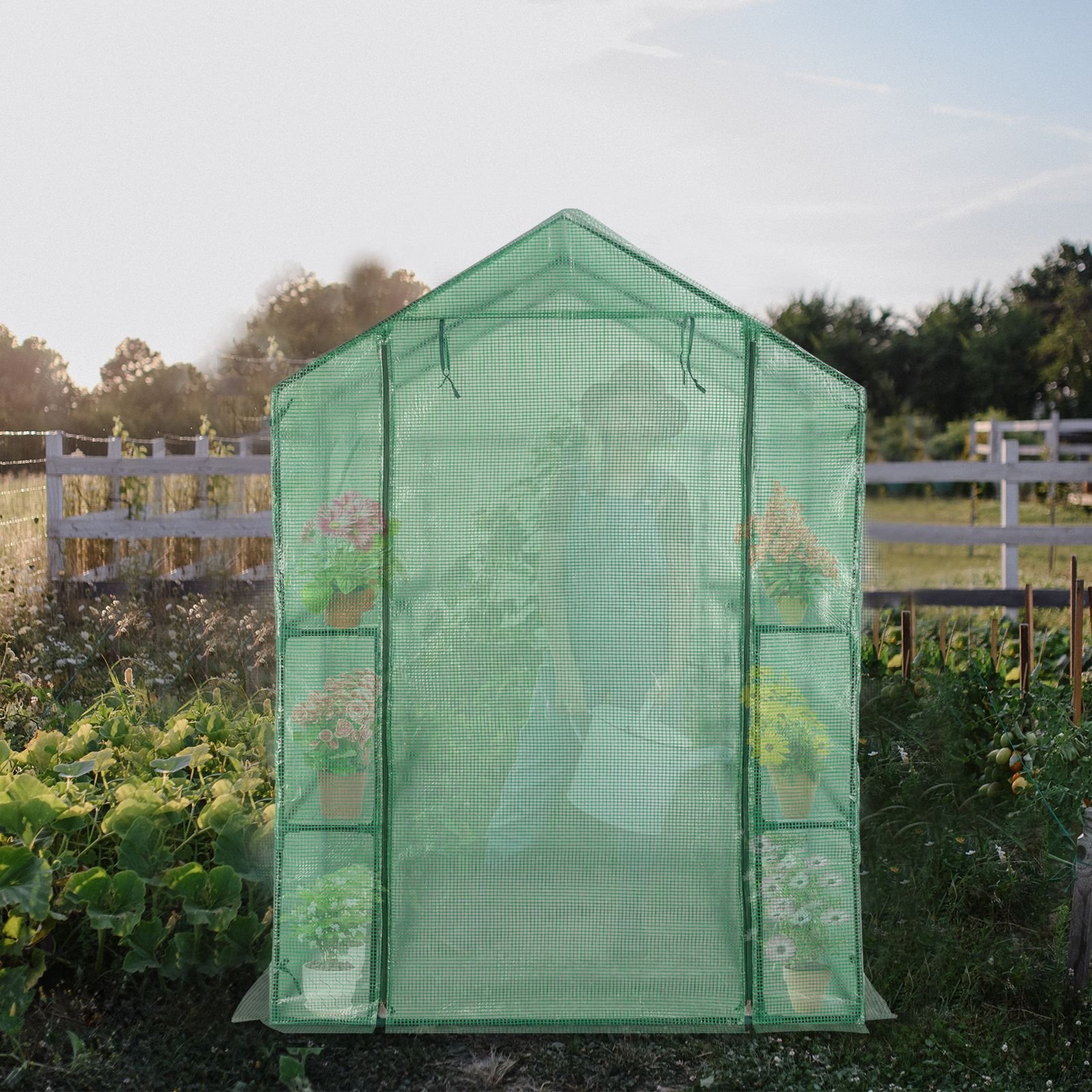 Home > Greenhouse for Outdoors Indoors, Walk-in Small Greenhouse Thickened PE Cover & Heavy Duty Powder-Coated Steel, Sturdy Portable Warm House