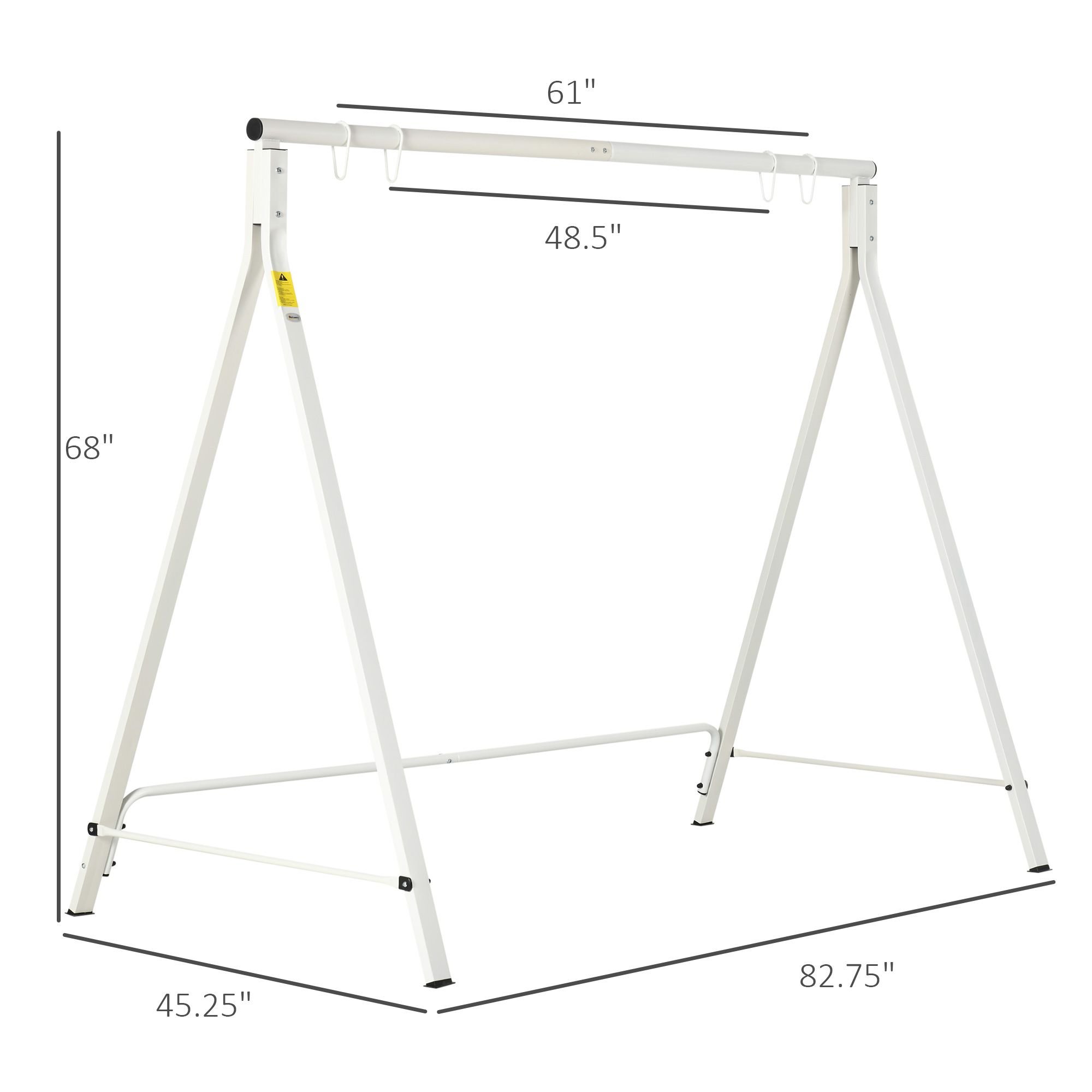 5.- Overall Dimensions: 82.75" W x 45.25" D x 68" H. Weight Capacity: 528 lbs. (Suitable for Outsunny product: 84A-252 and 84A-255. For swing seat width < 59.1", and only a swing can be hung, which needs to be placed in the center to prevent tipping.).
