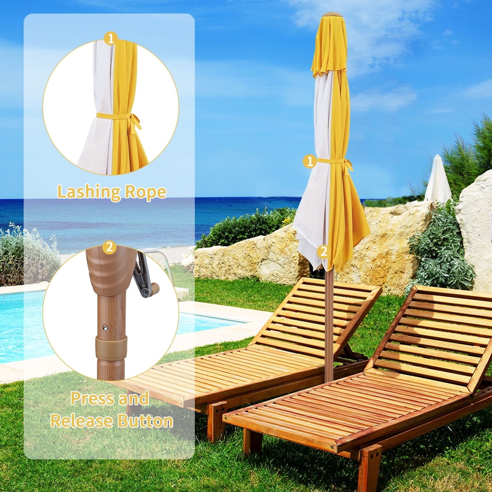 7.5ft Patio Umbrella,Outdoor Beach Portable Table Market Umbrella Waterproof UV-proof,Yellow/White