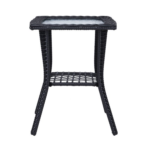 Outdoor Wicker Side Table, Rattan End Table with Glass Top, Patio Coffee Bistro Table for Indoor Garden Porch Balcony, Black Outdoor Wicker Side Table, Rattan End Table with Glass Top, Patio Coffee Bistro Table for Indoor Garden Porch Balcony, Black Outdoor Wicker Side Table, Rattan End Table with Glass Top, Patio Coffee Bistro Table for Indoor Garden Porch Balcony, Black