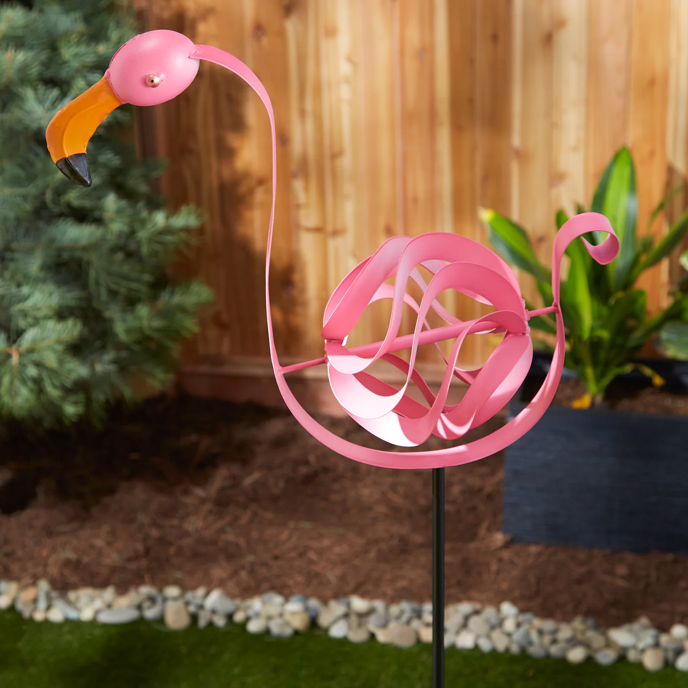 • Outdoor garden stake is activated by the wind and will playfully twirl this decorative yard art. Simply stick the stake into the soil and watch the wind create a gorgeous garden ornament!